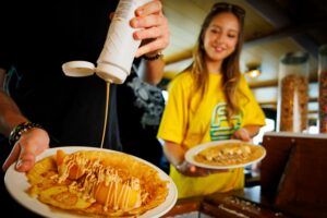 Vaar mee op de Maas waar je een prachtig uitzicht hebt over de imposante skyline. Ontdek Rotterdam vanaf het water terwijl je smult van traditionele Hollandse pannenkoeken. De beroemde en gedurfde architectuur waar Rotterdam wereldwijd om bekend staat, is vanaf het water niet te missen! In een ongedwongen sfeer geniet je onbeperkt van versgebakken spek-, appel- en naturel pannenkoeken. Versier je pannenkoeken met tal van toppings, van zoet tot hartig. Twijfelen hoeft niet, want de volgende ronde kies je gewoon weer een andere pannenkoek! Het record staat op 22, hoeveel pannenkoeken kun jij op?